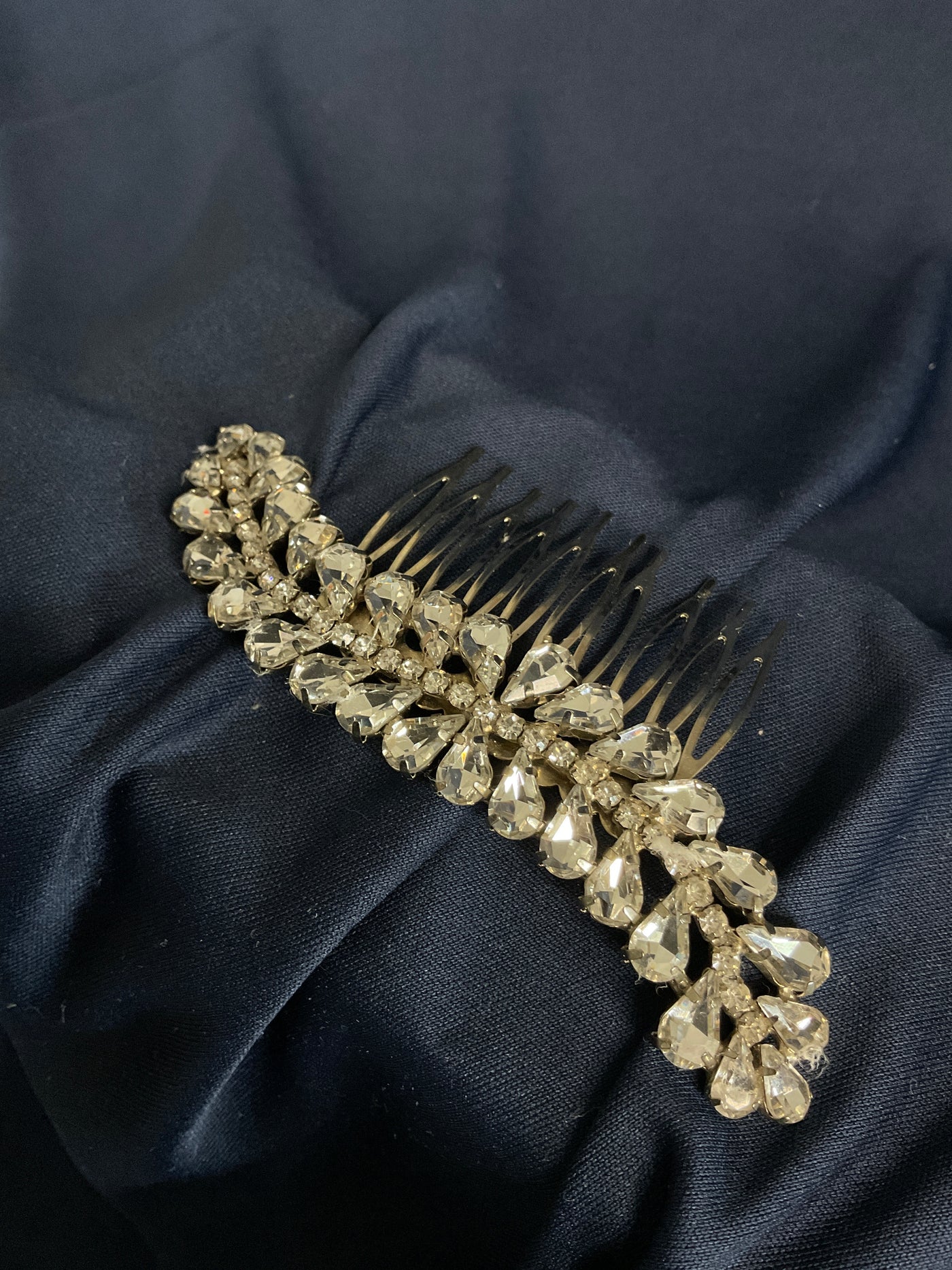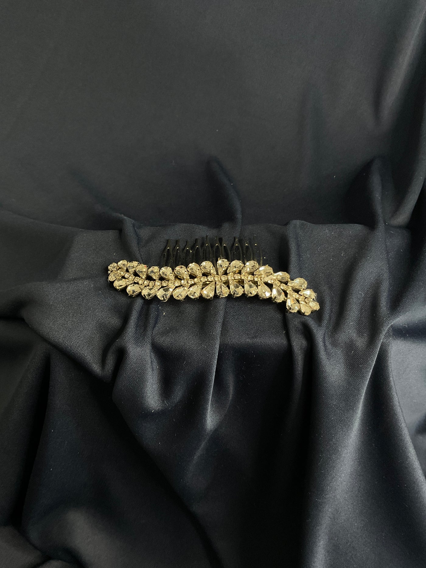 La base metálica de tono plateado comptelamte la estructura de la peineta ,que se adapta cómodamente al peinado y proporciona firmeza durante toda la celebración .Este accesorio es perfectible para acomodar recogidos altos ,moños clásicos o incluso ondas sueltas con toque de distinción