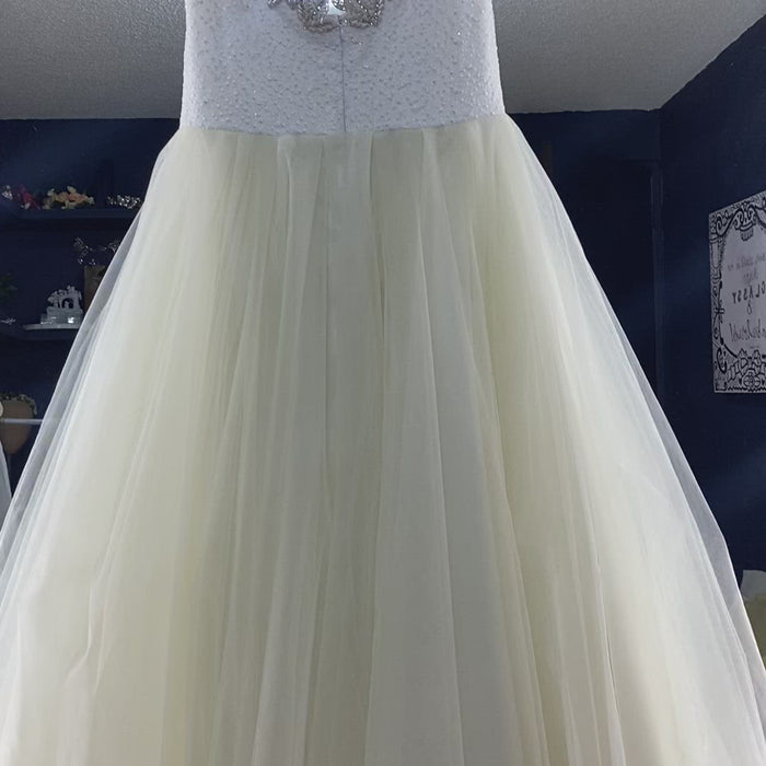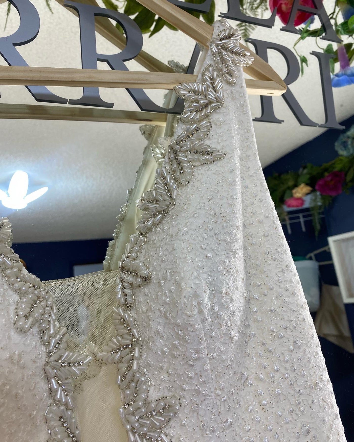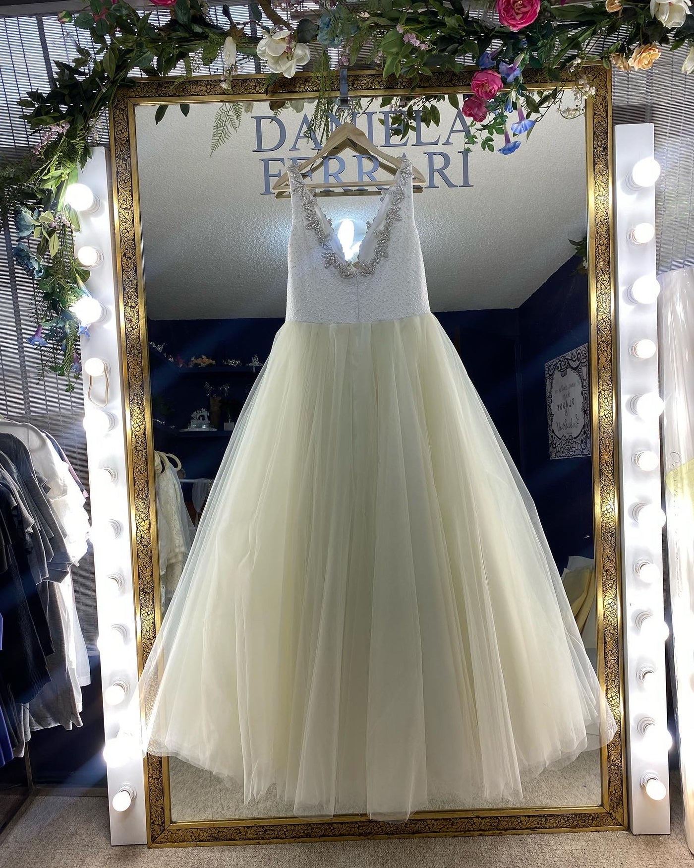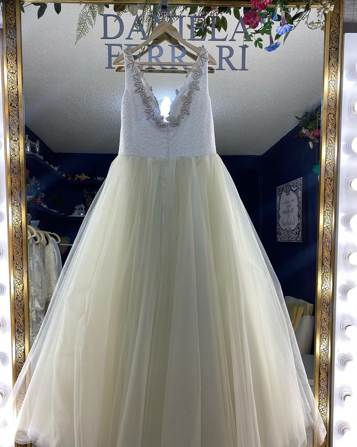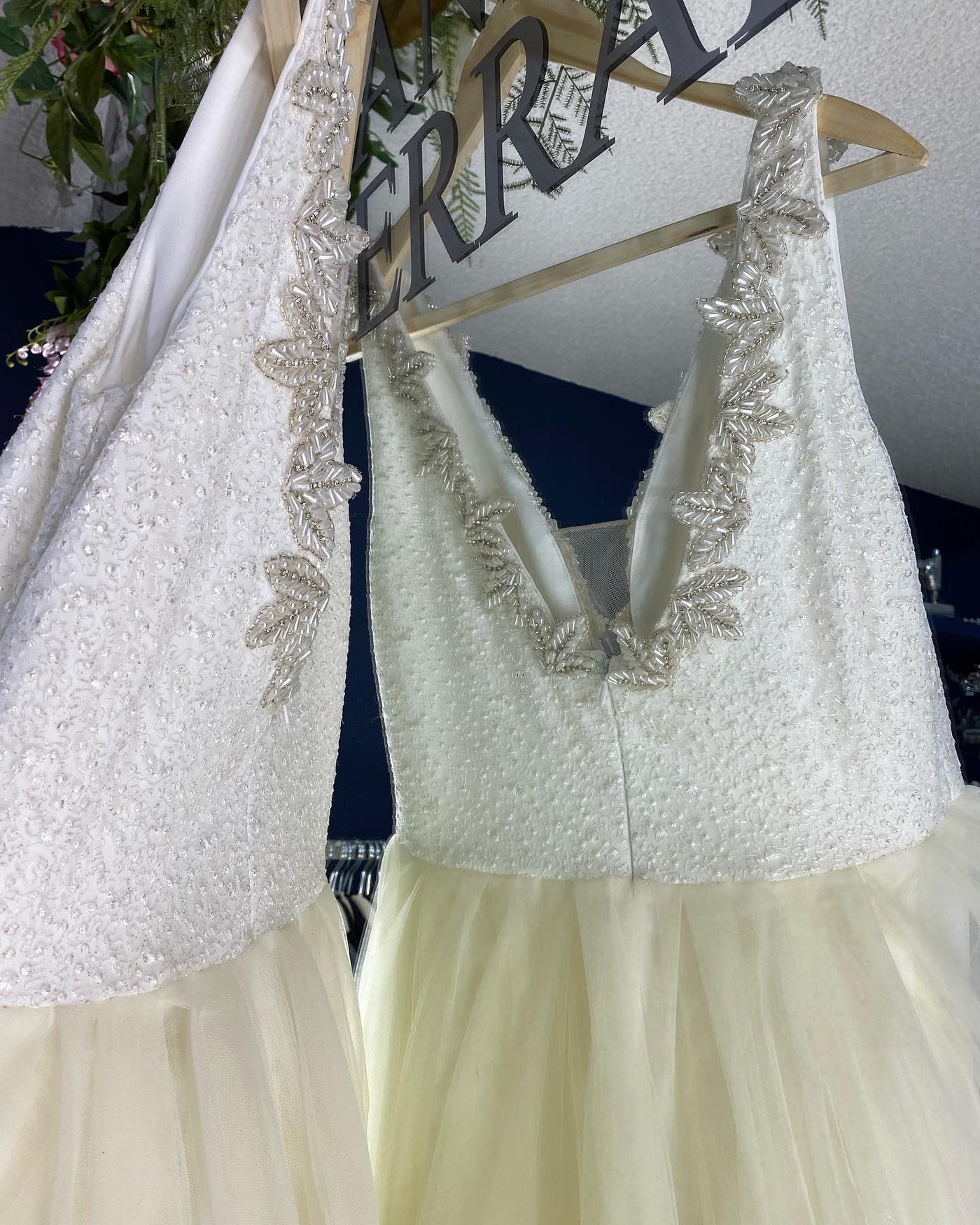 De la coleccion especial, este vestido sencillo pero con detalles muy finos es ideal para tu civil, porque tiene justo lo que necesitas, se puede cortar a largo midi, ósea media pantorrilla por si lo quieres mas corto.