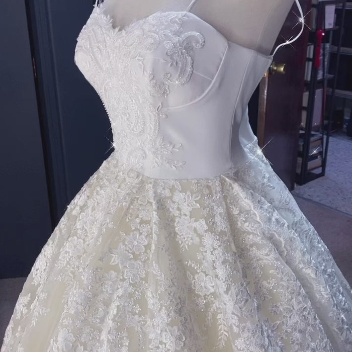 Espectacular vestido de novia PREMIUM Encaje con bordado de lentejuela mini transparente que le da un brillo espectacular
