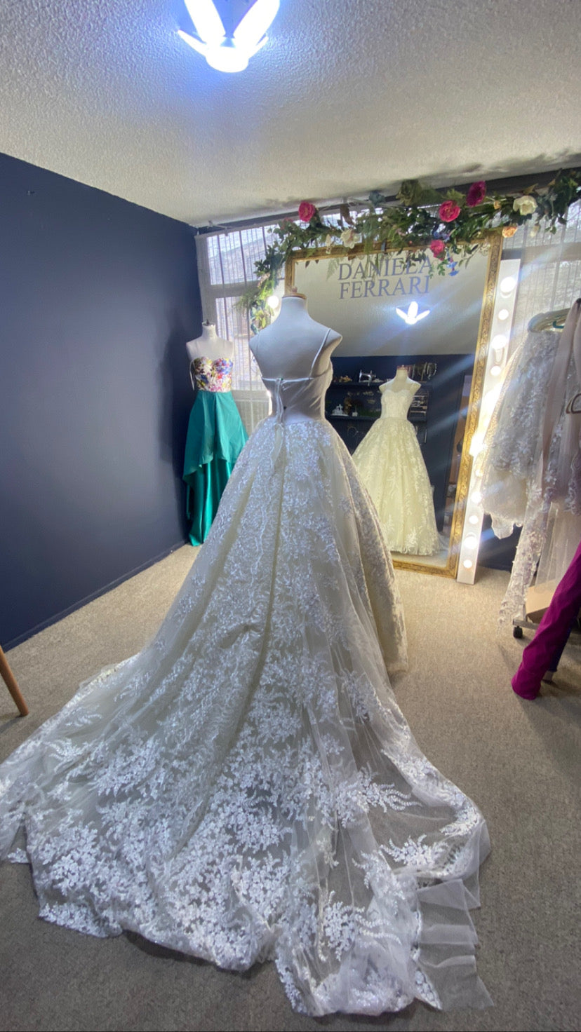 lo dejamos pendiente para ajustar a la talla de la novia que lo adquiera ♥️ De esta manera sería especialmente bordado a su cuerpo