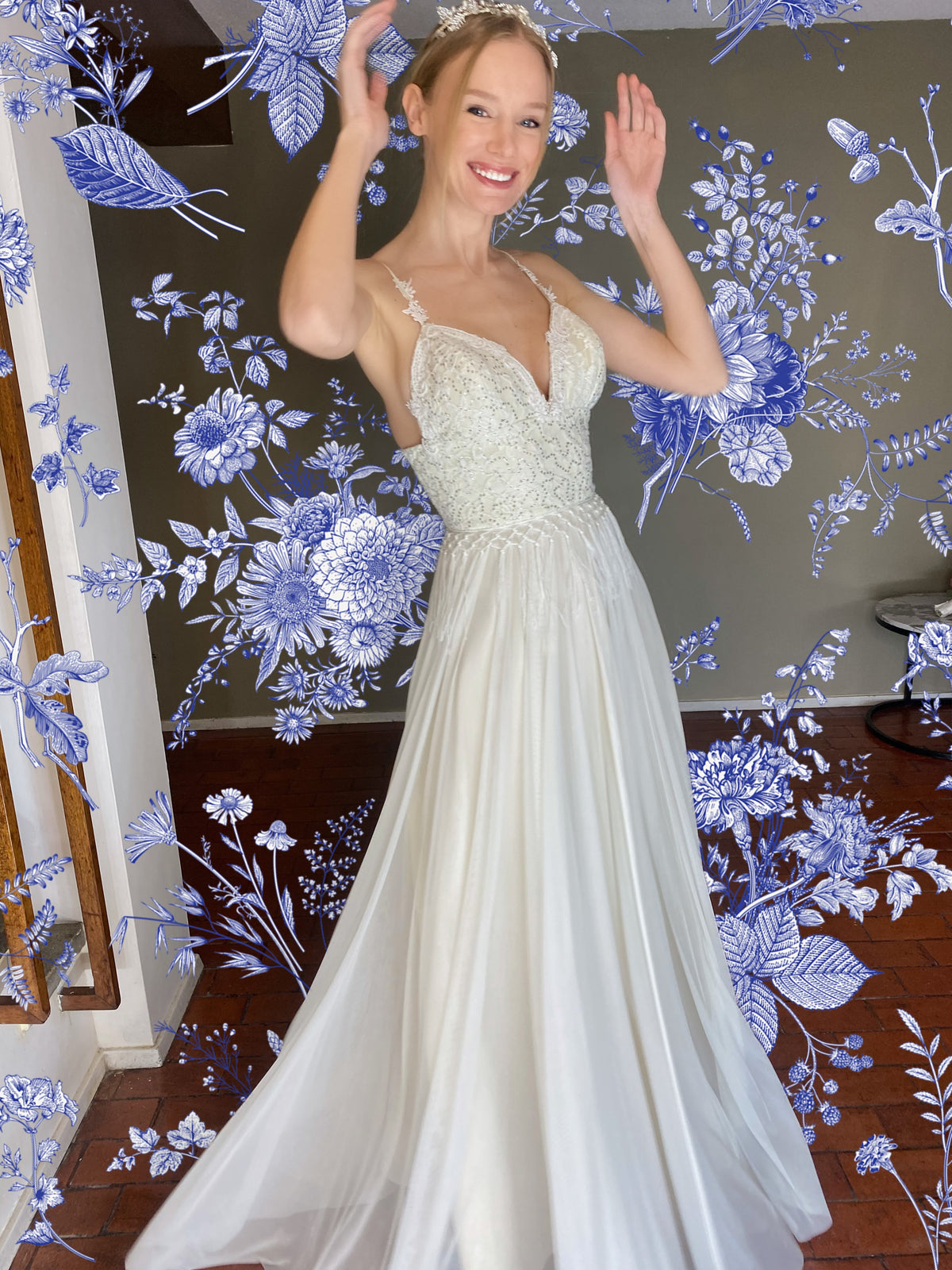 el talle de encaje con lentejuela le da ese boho glam que nos encanta!