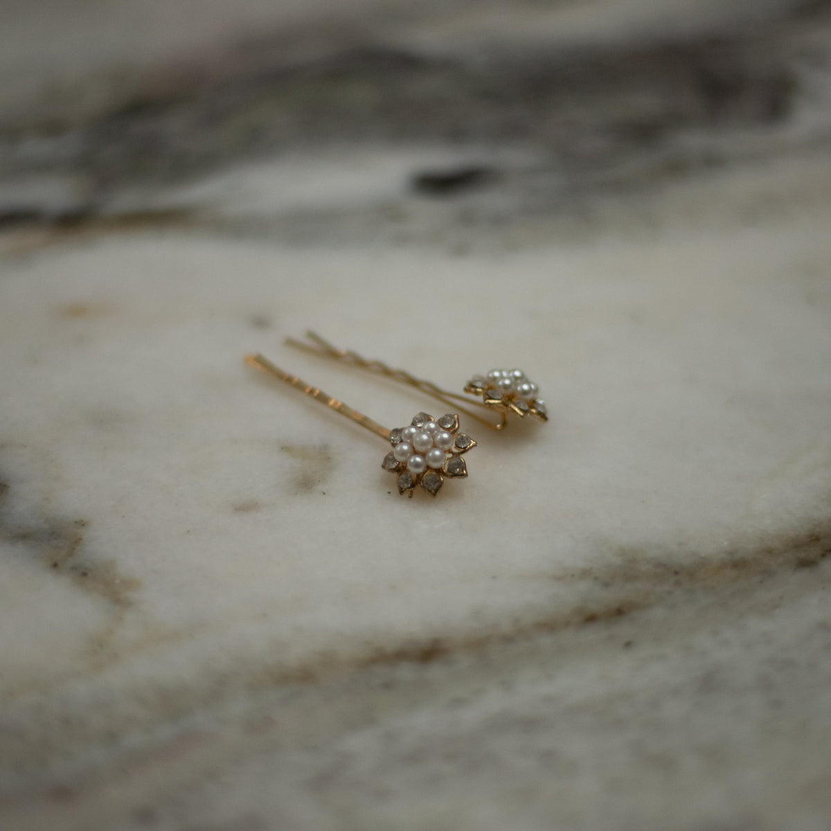 Con conjunto de pins y puedes armar un tocado lateral minimalista o si quieres algo más natural con dos pins de lado o céntrales