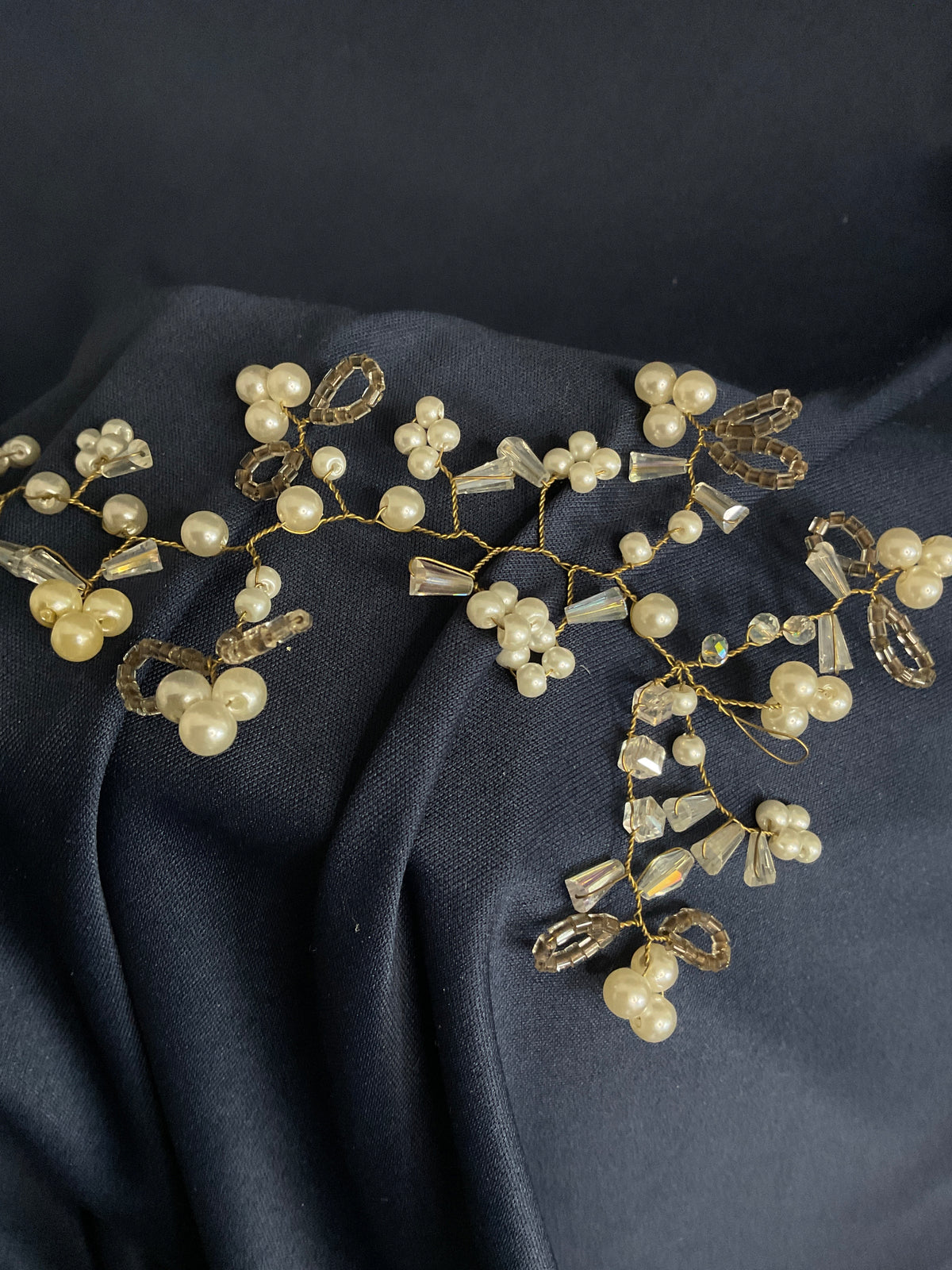 Tocado cristales y perlas