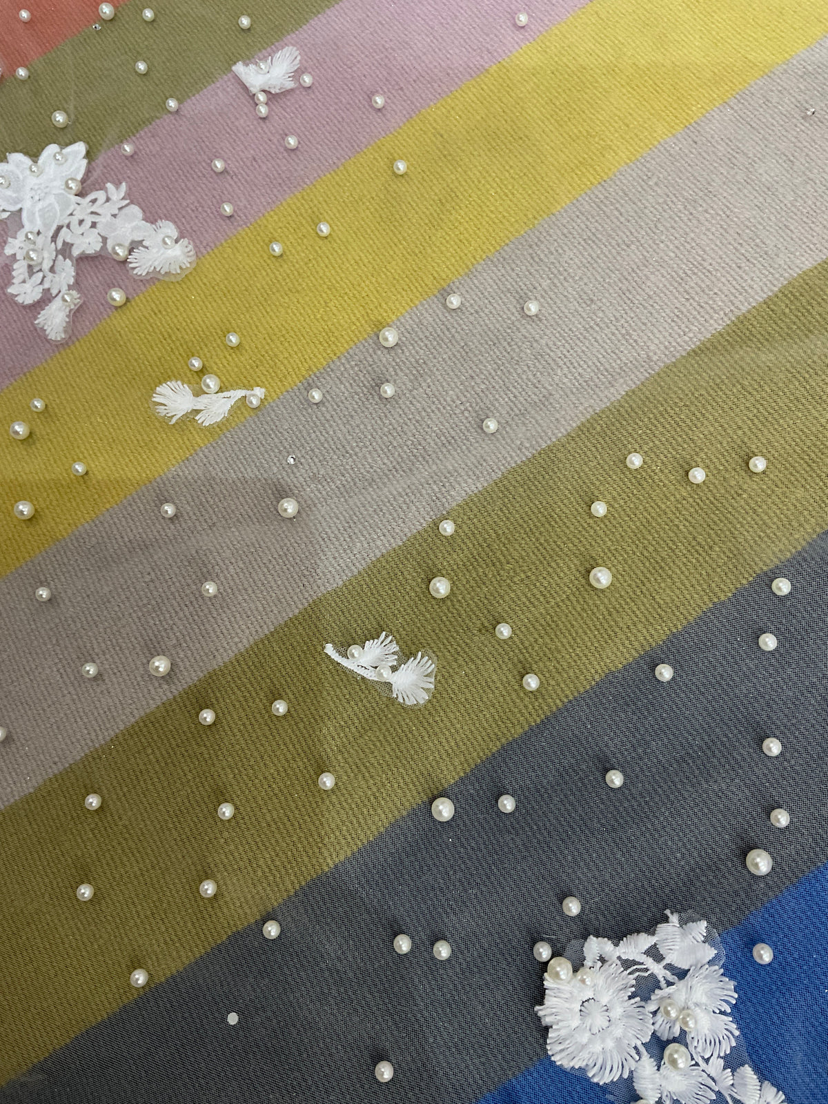 Velo de tul con aplicaciones de perlas y flores