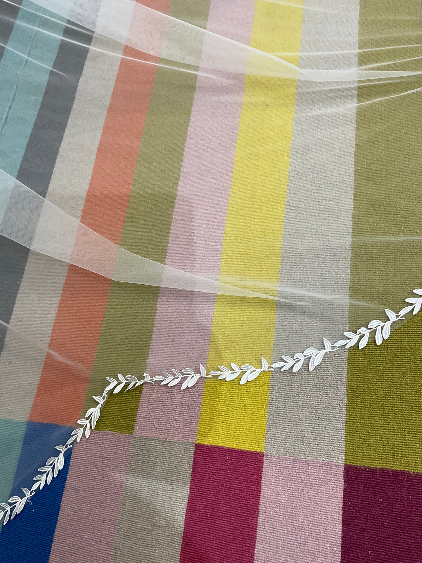 Velo de tul con orilla de hojas