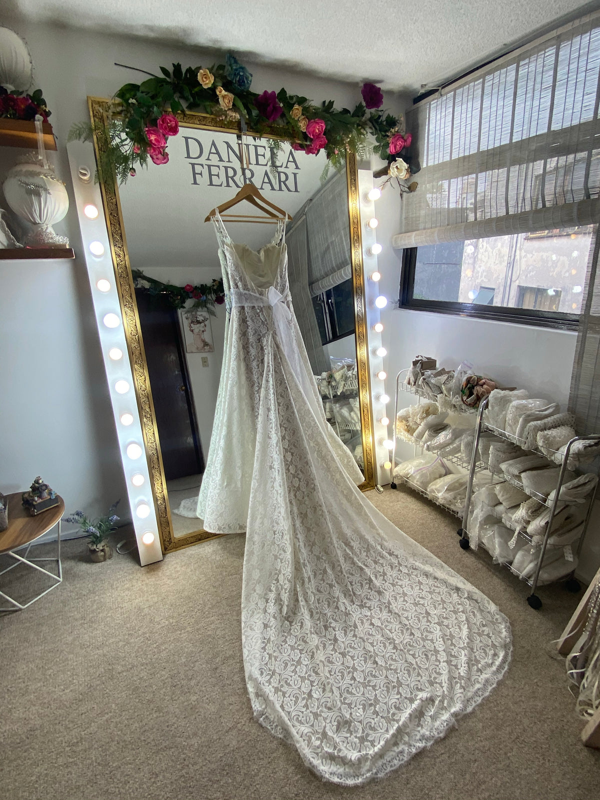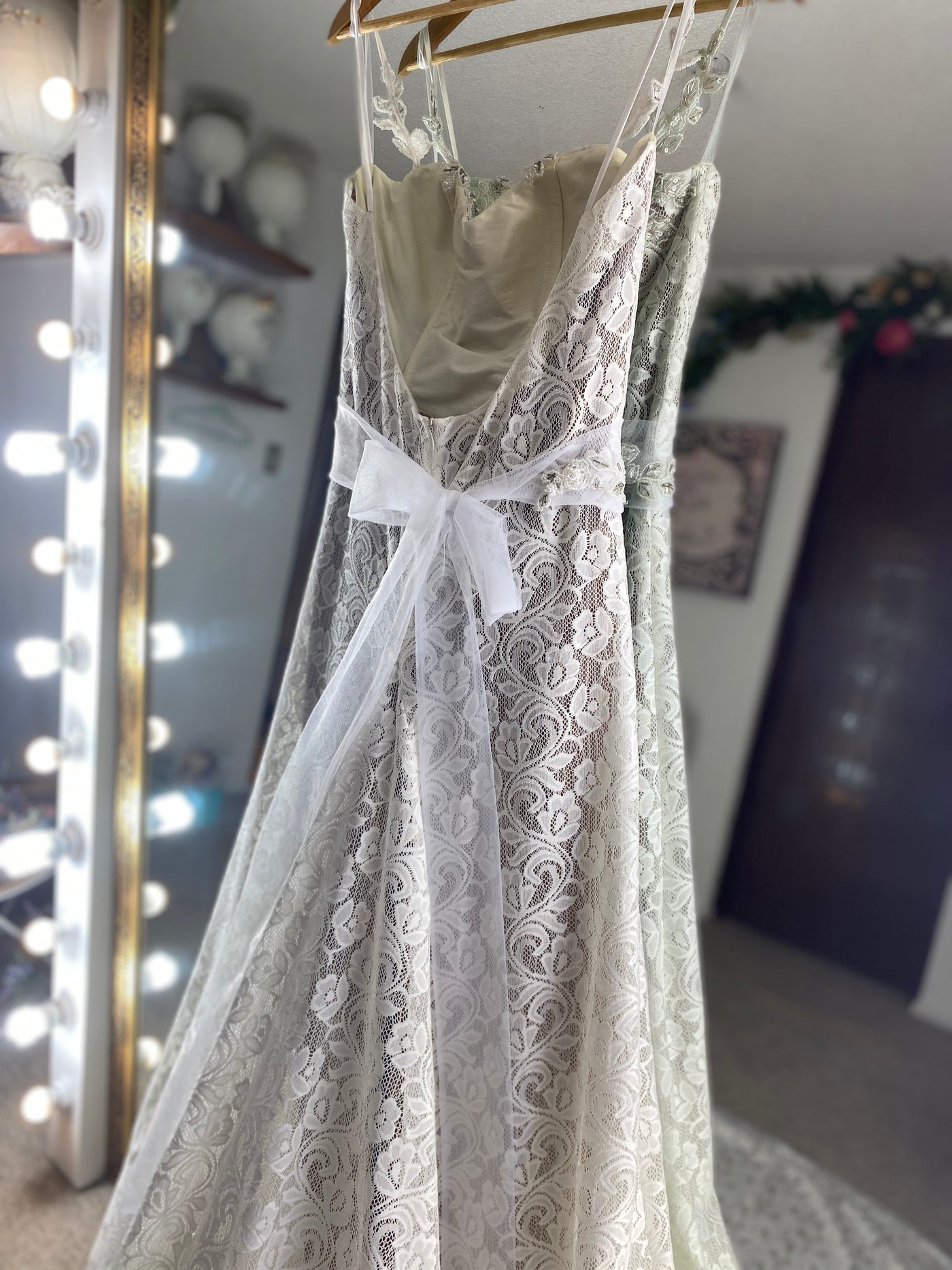 Si te gusta el glamour de los años 20 este vestido es para ti! Mezclado con aire Boho con la espalda en transparencia terminando con botones forrados y tirante bordado. El vuelo de la falda es un goce al caminar y la cauda es hermosa! ❤️