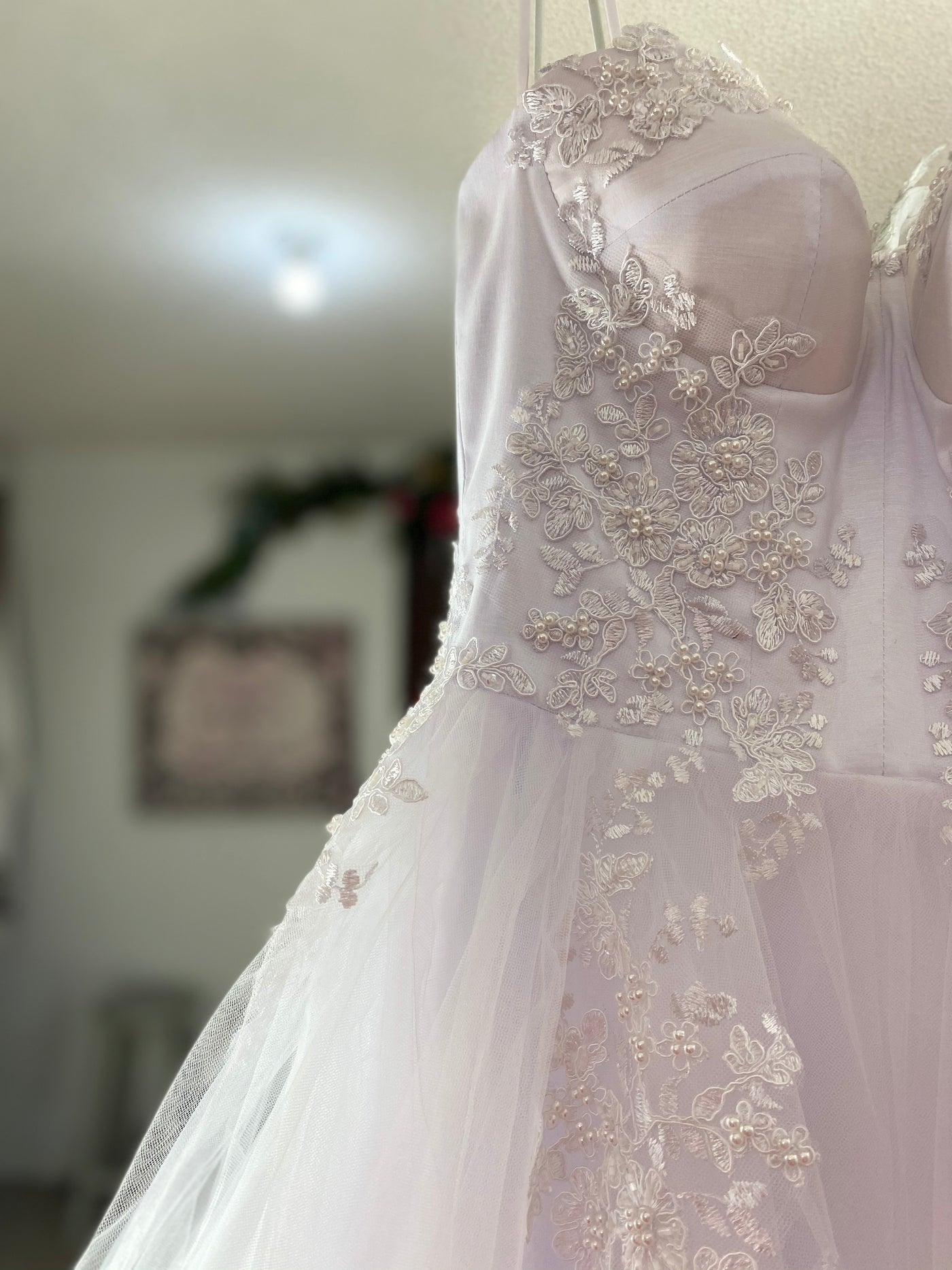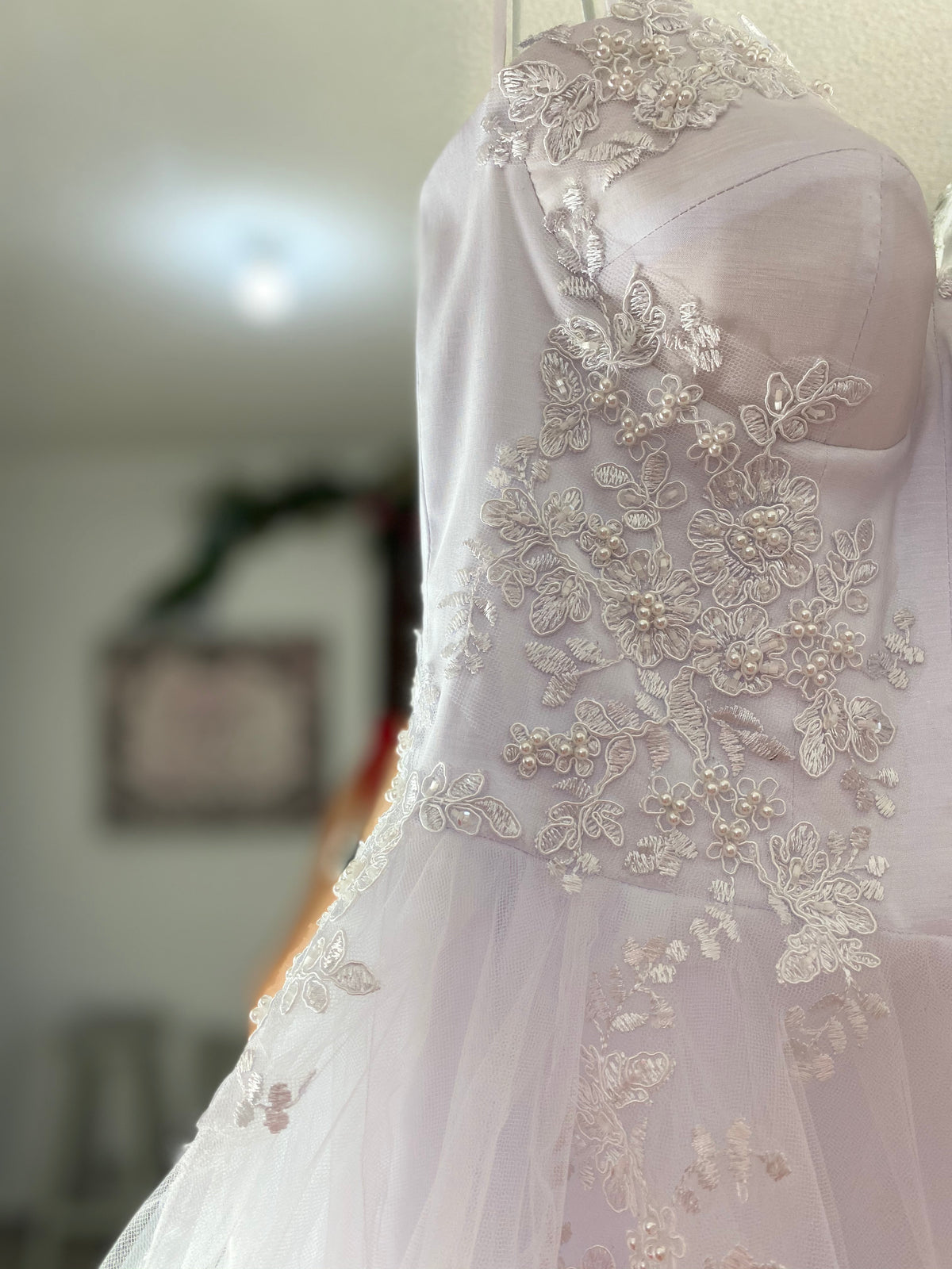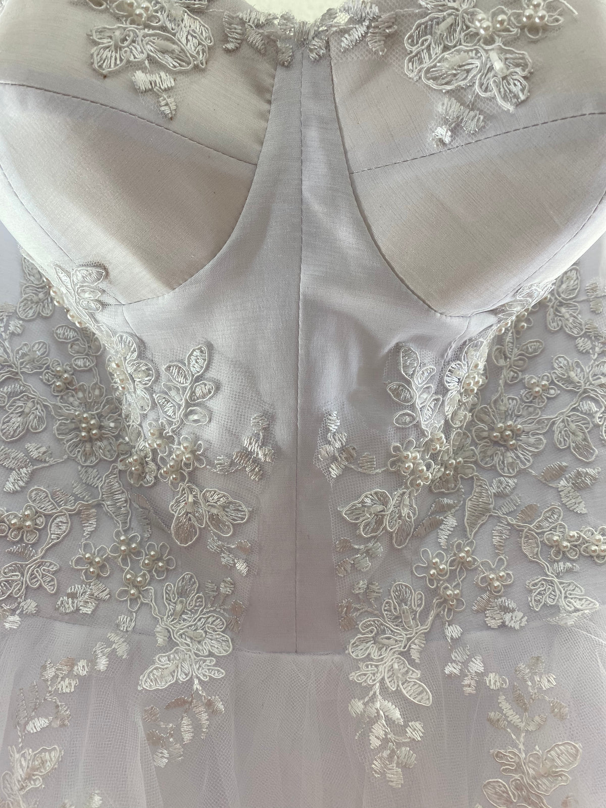 El Bordado es de la flor clásica de encaje francés con pedrería que enmarca cada detalle.