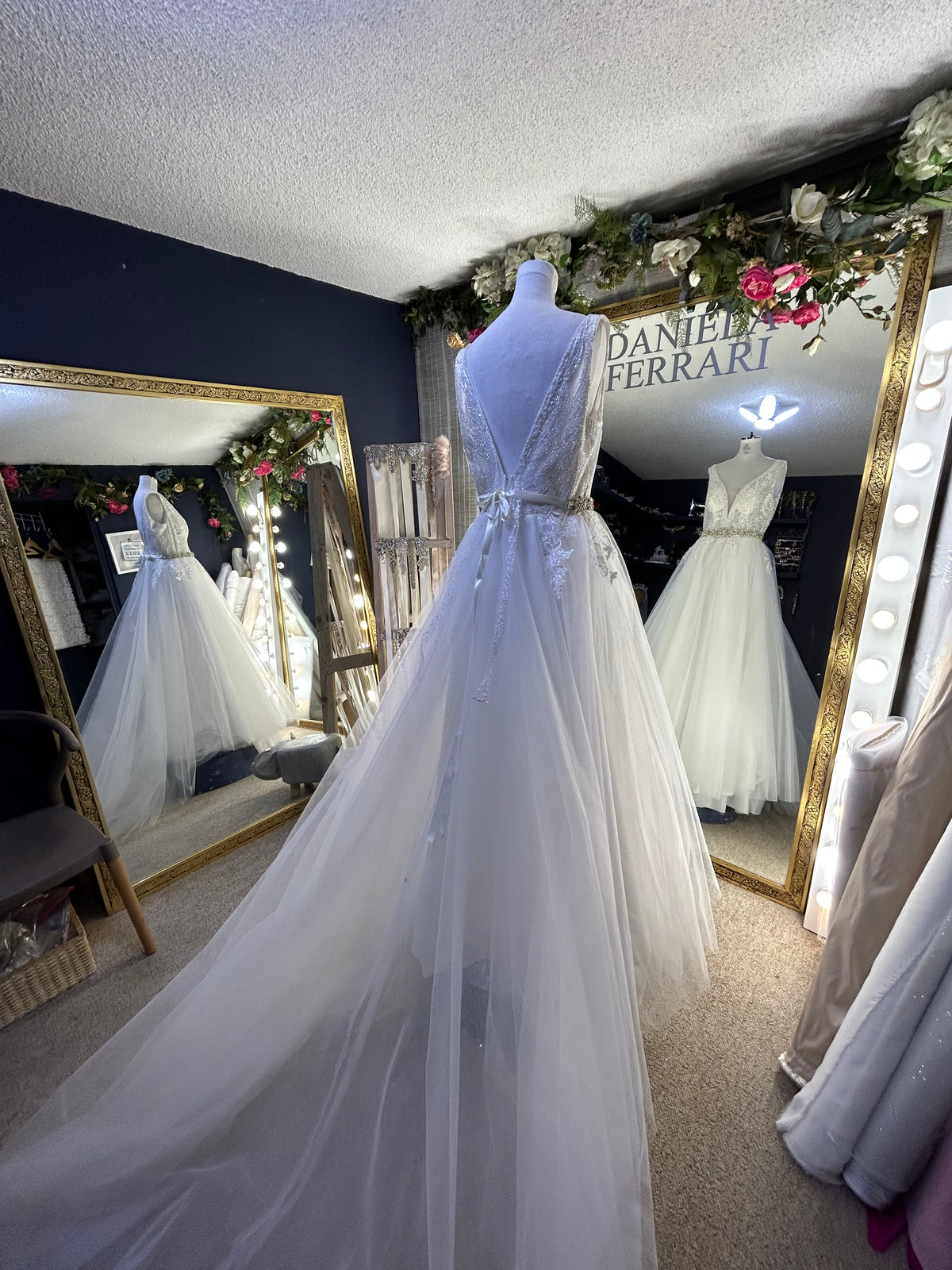 Te recomiendo coronar con un cinturón de la colección las causas desmontables como la causa de olanes harán que este vestido se espectacular en la colección de Velos. Encuentras varias opciones que pueden ser juego a esta belleza de vestido