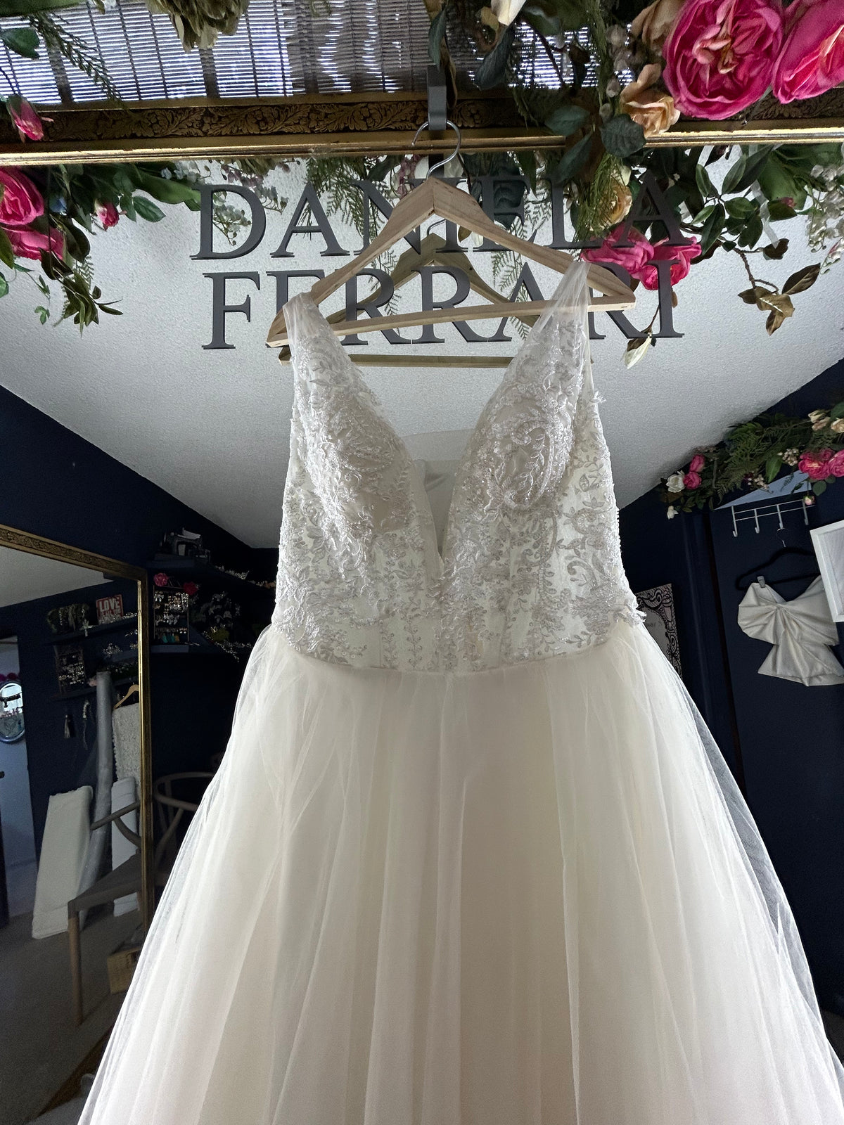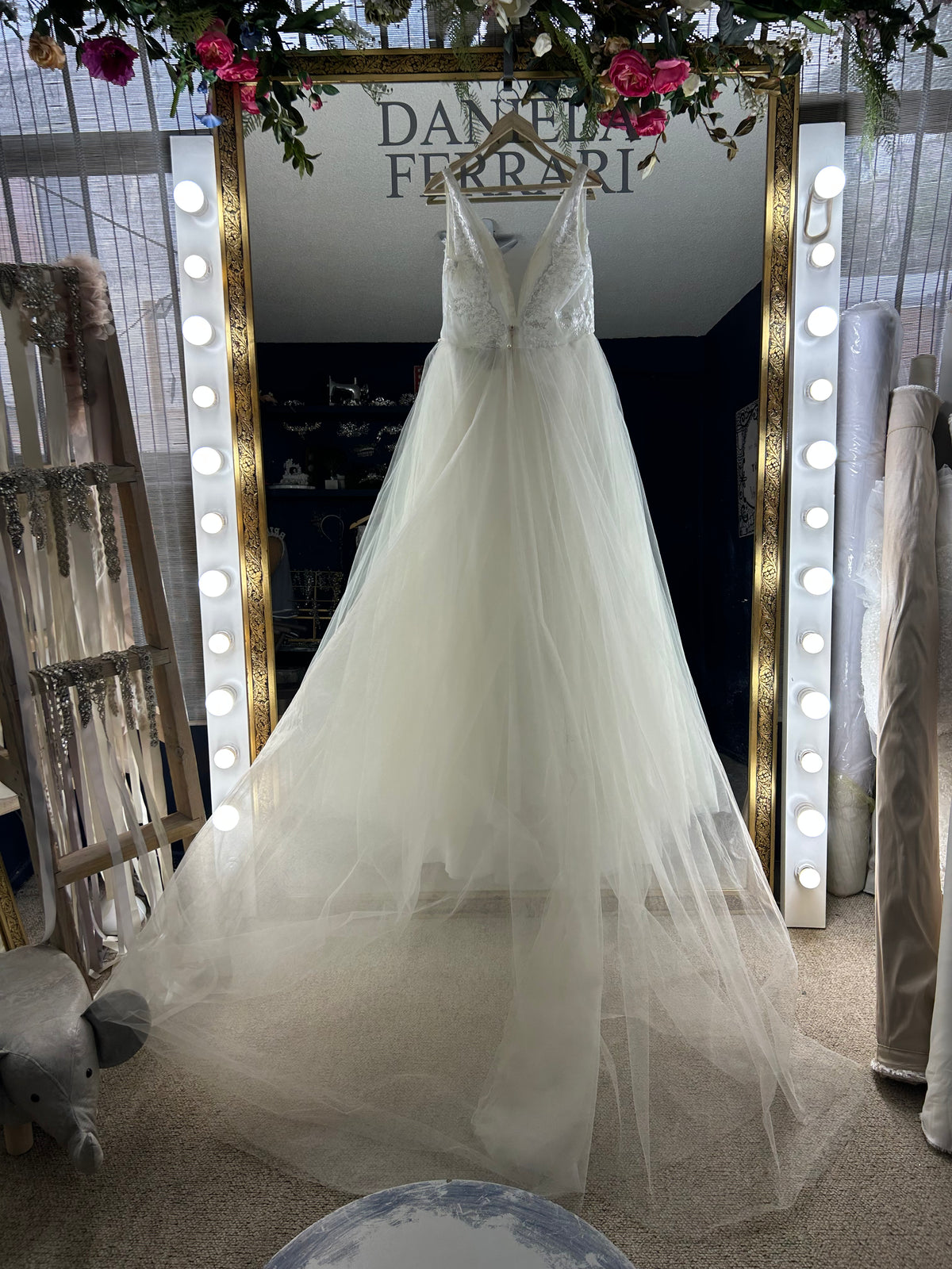 Te recomiendo coronar con un cinturón de la colección las causas desmontables como la causa de olanes harán que este vestido se espectacular en la colección de Velos. Encuentras varias opciones que pueden ser juego a esta belleza de vestido