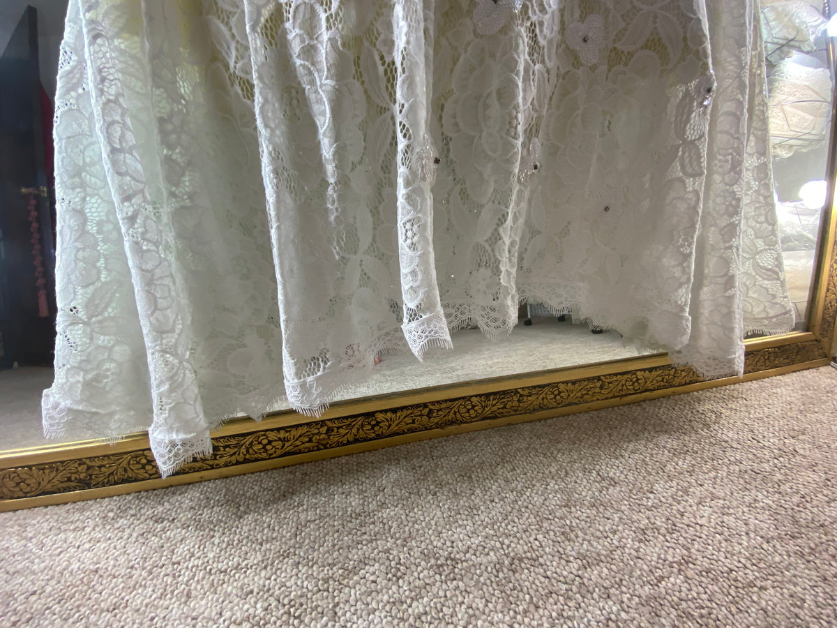 Se levanta la vida en olan para que la orilla de la falda que esta enmarcada con una cinta de encaje español le haga una caída hermosa!