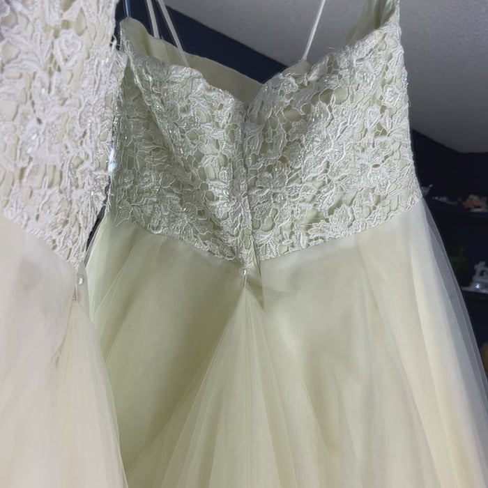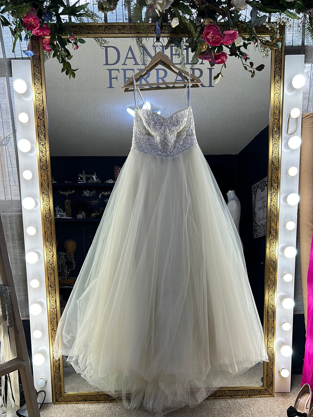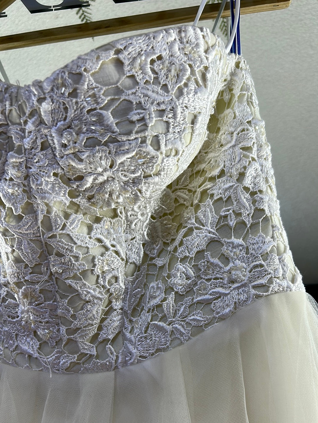 Guipiure con pedrería en el talle de copas marcadas con varillas