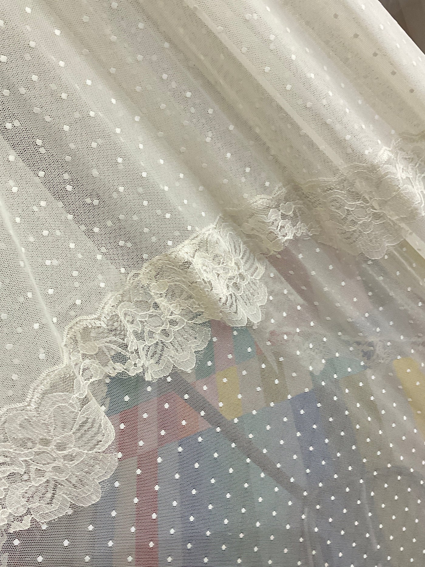 Descubre el encanto de nuestro sofisticado velo de tul plumeti, salpicado de pequeñas motas románticas, confiere una textura etérea y ultraligera que envuelve con gracia la silueta de la novia. La delicada orilla de encaje bordado enmarca el contorno con un aire clásico y elegante, inspirando un estilo vintage sutil. Pensado para novias clásicas o bohemias que buscan un toque diferente, este accesorio nupcial bohemio resalta la suavidad y la ligereza del conjunto, aportando un matiz romántico atemporal ideal para bodas con esencia vintage.