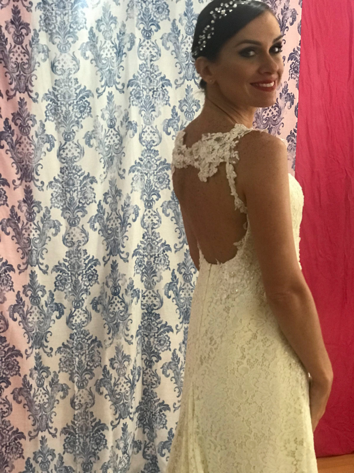 La espalda con los encajes encontrados y terminado con botones forrados.