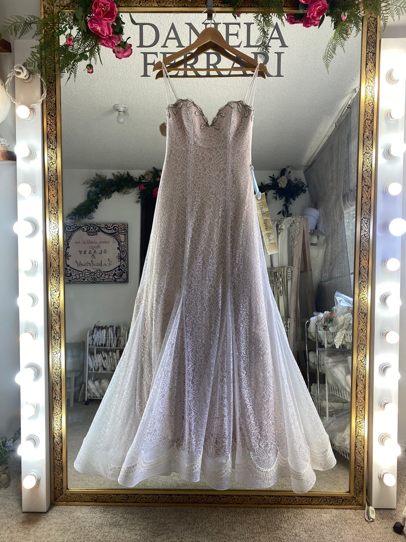 los detalles de los bordados en escotes son hojitas bordadas a mano, con stars para que le de ese brillo que tienen los vestidos de novia.