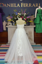 Un vestido que parece salido de un jardín encantado. Este diseño presenta un corset estructurado de transparencias bordadas con aplicaciones florales, acompañado de tirantes finos que enmarcan delicadamente los hombros. La falda de tul suave está adornada con bordados en caída vertical que estilizan la figura y dan un efecto de movimiento natural y romántico. Una pieza perfecta para novias que desean un look de alta costura, ligero, fresco y lleno de detalles artísticos.✨
